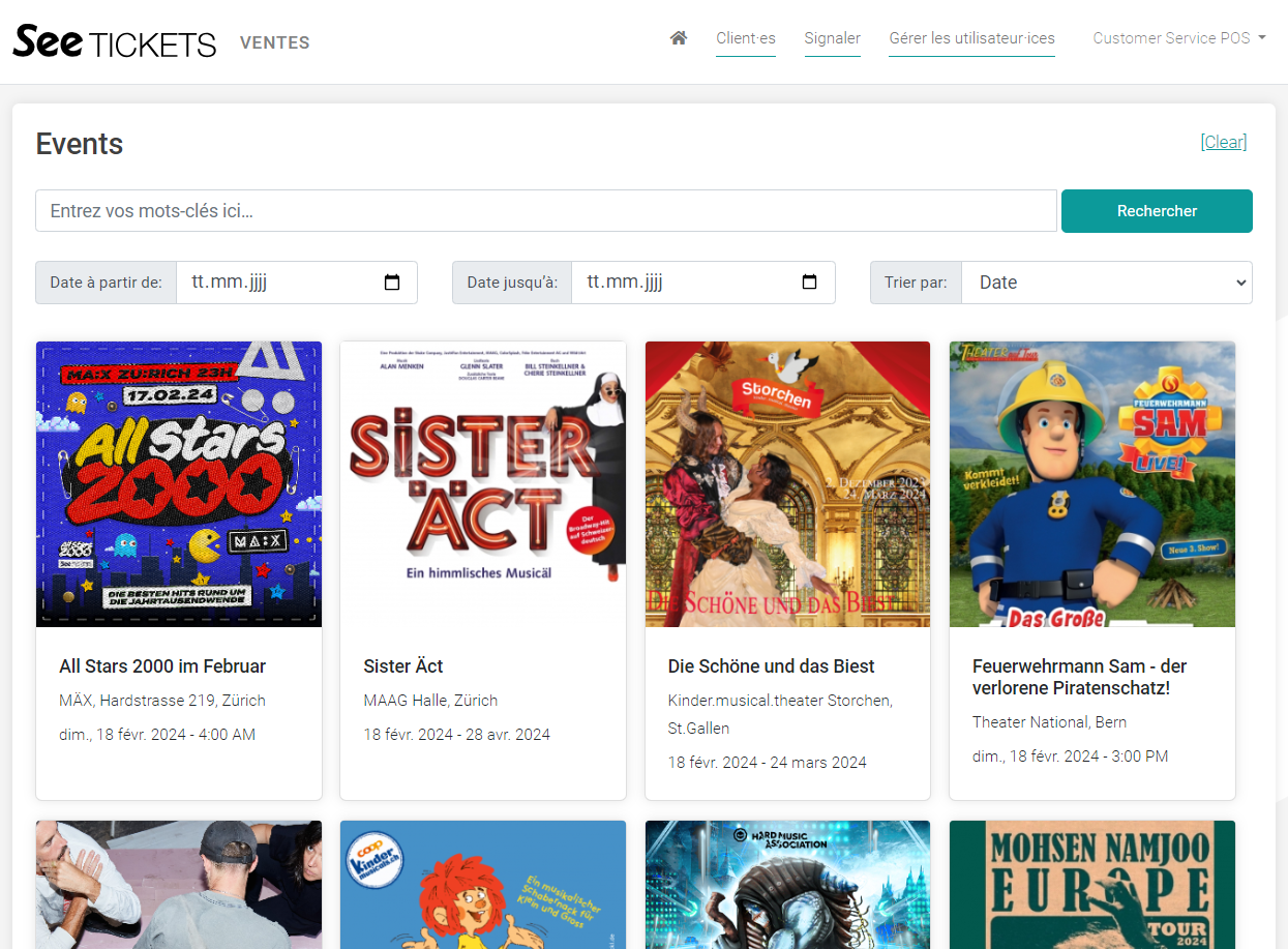 Si vous avez trouvé l'événement souhaité, mais que seul le texte apparaît et qu'aucune option de sélection des billets n'est disponible, cet événement est toujours vendu sur l'ancienne plateforme à l'adresse pro.starticket.ch ou pro.starticket.ch. Pour ce faire, veuillez passer sur le portail traditionnel.